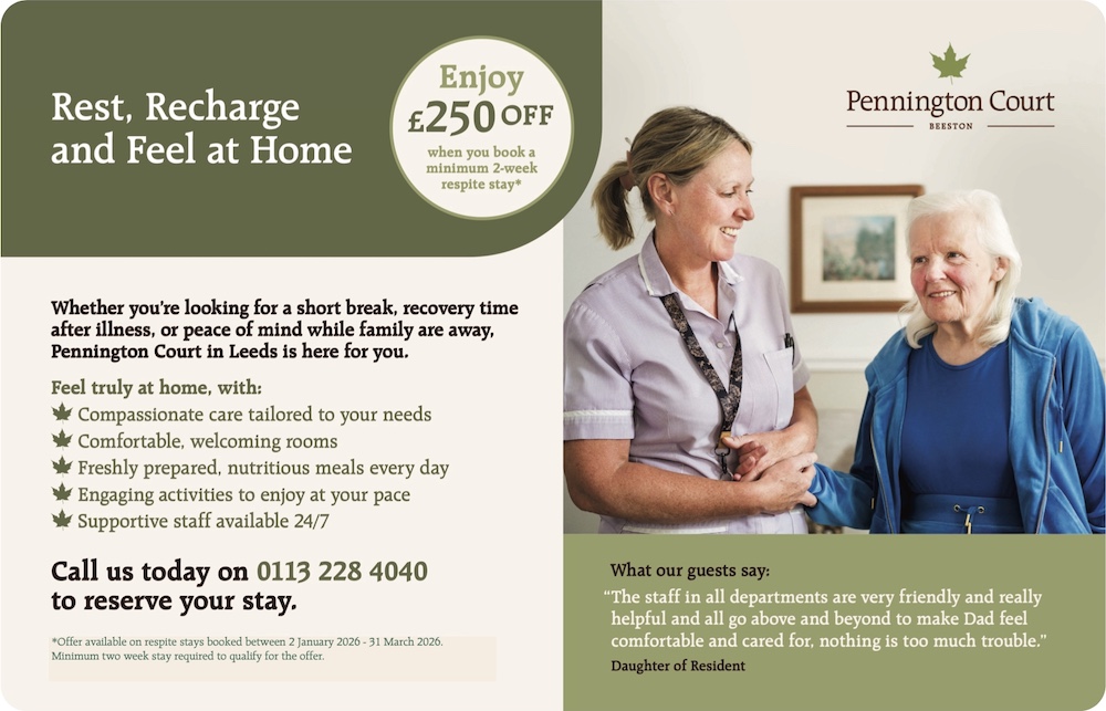Call today to find out more or arrange a visit on 0113 228 4040 and quote ‘South Leeds Life Respite offer’. Or visit the website to find out more. bit.ly/Pen-Court-Respite-Offer