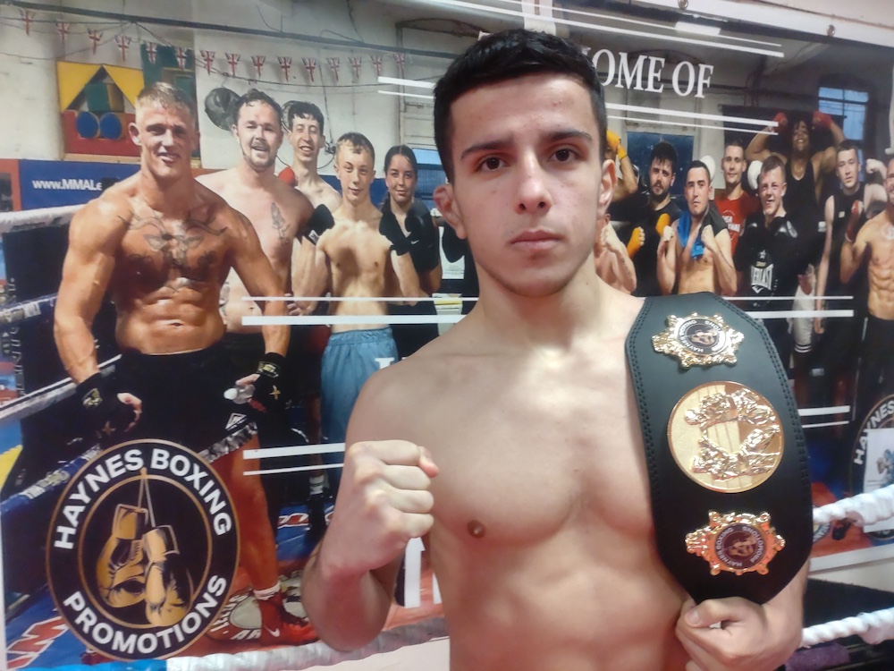 Rawa Rashid, 17, is delighted at winning the 75kg novice title boxing belt on 2025’s last Haynes show at The Angler’s in Burmantofts. His fight was described as “an explosive display of boxing talent showcasing all the skills practised.”