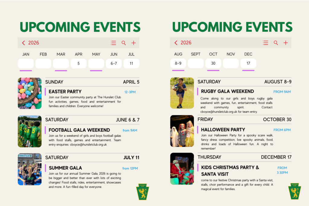 The Hunslet Club is delighted to announce the launch of its annual programme of community and family-friendly events, taking place throughout the year at its Hillidge Road and Hunslet Club Sports Village sites.